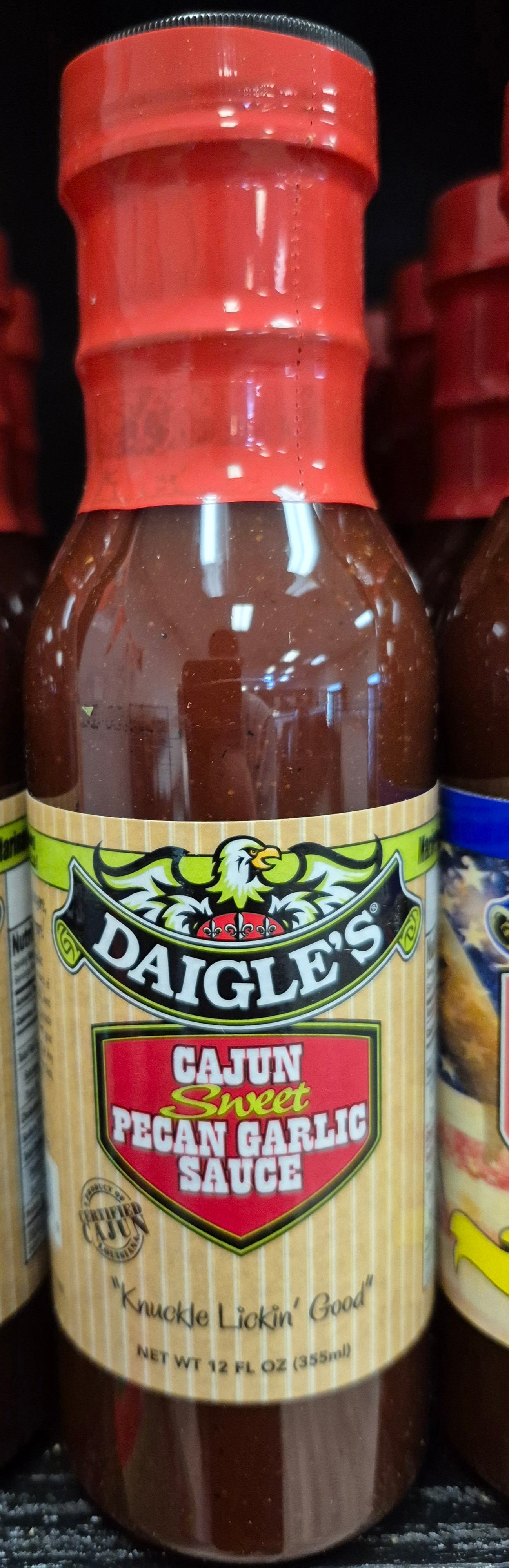 Daigles Sweet Pecan Garlic Sauce combines the rich, nutty flavor of pecans with the robust taste of garlic, creating a versatile condiment perfect for enhancing meats, vegetables, and more. Expertly crafted, this sauce balances sweetness and savory notes, adding depth and complexity to your dishes. Ideal for grilling, dipping, or finishing, it elevates everyday meals with a distinctive, gourmet touch.